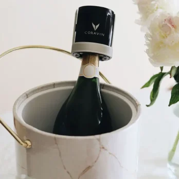 System Coravin Sparkling do szampanów i win musujących został wyposażony w wewnętrzny regulator, który zatrzymuje ładowanie butelki po osiągnięciu odpowiedniego ciśnienia.