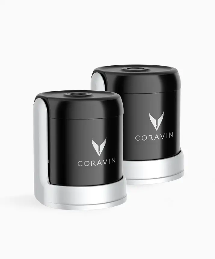 Sparkling Stoppers Coravin. Dodatkowe nakładki na otwarte butelki do systemu Coravin Sparkling™. Pozwalają one na przechowywanie jeszcze większej ilości otwartych butelek win musujących tak, żebyście nie musieli Państwo wybierać już między swoimi ulubionymi winami musującymi. Pasują one do wszystkich standardowych butelek Champagne a nawet do butelek w rozmiarze magnum. Nakrętki działają wyłącznie przy użyciu Systemu Coravin Sparkling™.